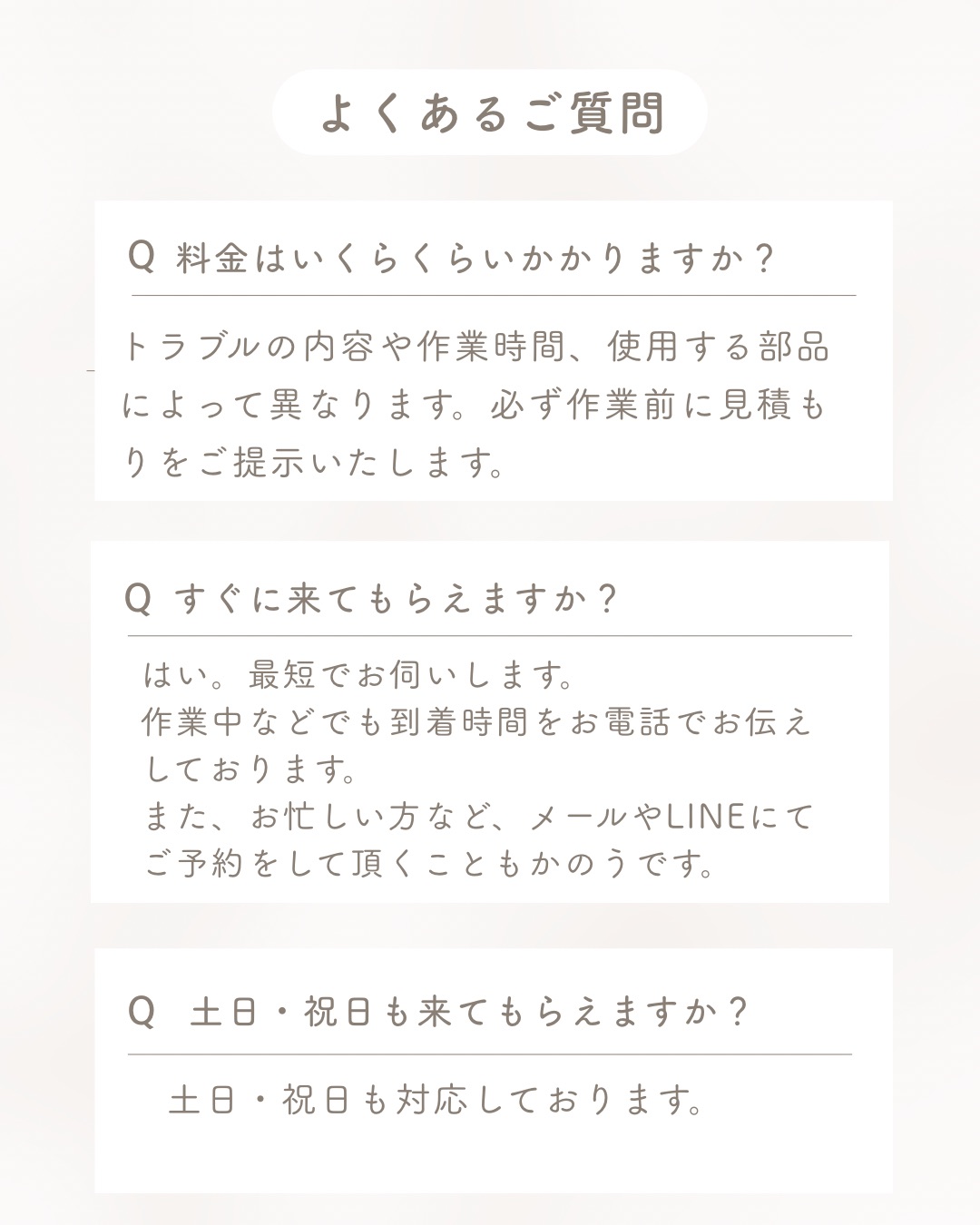 詳細を見る♦︎トイレのつまり/水漏れ♦︎キッチンつまり/水漏れ♦︎浴室つまり/水漏れ♦︎洗面台つまり/水漏れ